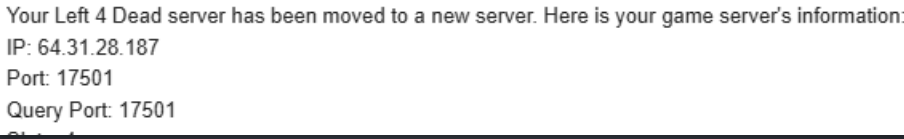 Dear DaveAs part of our ongoing commitment to our customers we are upgrading & consolidating our servers. As part of this process we need to move you off of the server you are currently on to the new hardware. Unfortunately this will change your IP/Port which cannot be avoided. These moves will be taking place on the 3rd of July 2025, once you are moved you will recieve an email with the new server details.The service being moved is23.111.147.110:17501Thank You